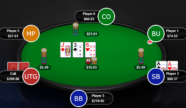 3-бет существенно зависит от того, в какой именно позиции игрок находится за столом. Хотя позиция за столом влияет на совершенно любую ставку. Чем большее количество игроков, которое могут делать ставки, остается, тем более тщательно нужно относиться к выбору диапазона разыгрываемых рук. Рассмотрим конкретный пример.