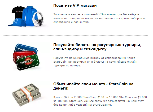 - Покупка ценных товаров. Во многих покерных комнатах существуют свои VIP-магазины, в которых за бонусные баллы клиенты могут приобрести различные брендовые вещи, гаджеты и т.п;