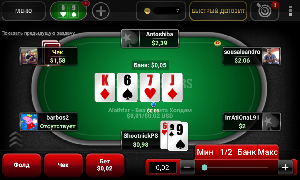 Конечно, чтобы иметь успех, когда делаете флоат в покере, нужно добиться игры тет-а-тет с противником. При игре с большим количеством соперников, выиграть при флоате почти невозможно. Когда за столом продолжают раздачу множество игроков, то возникает большая вероятность, что кто-то из соперников все-таки получит беспроигрышный набор карт и в ответ поставит колл или заметит, что вы блефуете. Следовательно, успешный флоатинг покер используйте только при игре с одним оппонентом и играя с позиции (делая ставки всегда вторым).