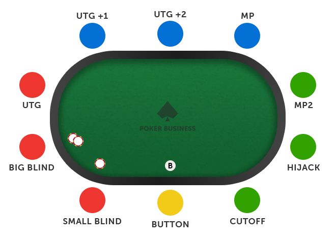 Самой выгодной позицией за игровым столом является наиболее поздняя – баттон (или фишка диллера). Эта позиция располагается перед малым блайндом. У игрока, находящегося на данном месте последнее слово (исключая блайнды), то есть практически самый выгодный вариант.