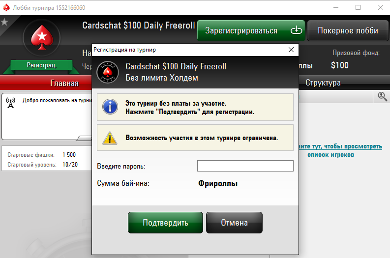 Таким образом, к примеру, в понедельник вам будет доступен пароль на Cardschat 100 Daily Monday Freeroll. В четверг 2017 года в вашем распоряжении будет пароль на Cardschat 100 Daily Thursday Freeroll.