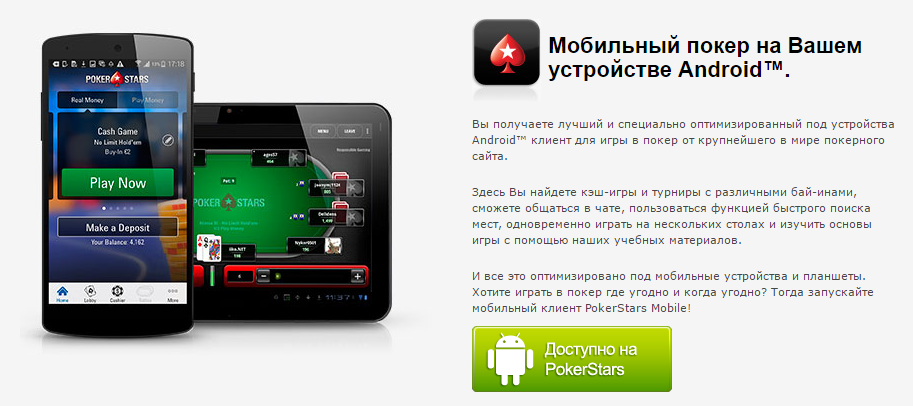 На сегодняшний день хватает достаточно простых и понятных методов скачивания и установки мобильного Андроид-клиента от Покер Старс. Все это приблизит к вам покер на реальные деньги.