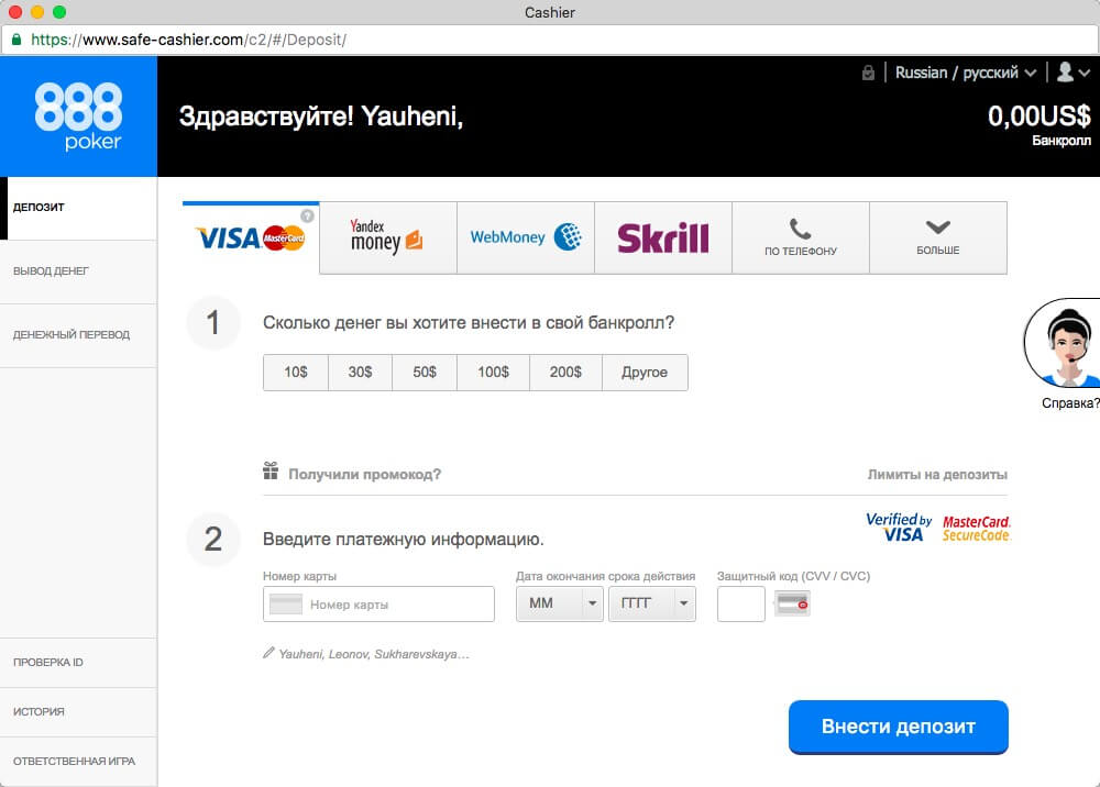 Вы можете перейти по ссылке на этой странице на официальный сайт покерной комнаты 888 Покер. Дальше вы наверняка разберетесь с тем, какое приложение вам нужно и готовы ли устанавливать мобильный клиент на свое мобильное устройство. В любом случае, мы советуем проходить регистрацию в покер-руме через стационарный клиент. Это даст вам возможность без лишних сложностей и хлопот получить все призы и бонусы за регистрацию (в том числе бездепозитный бонус на 88 долларов).