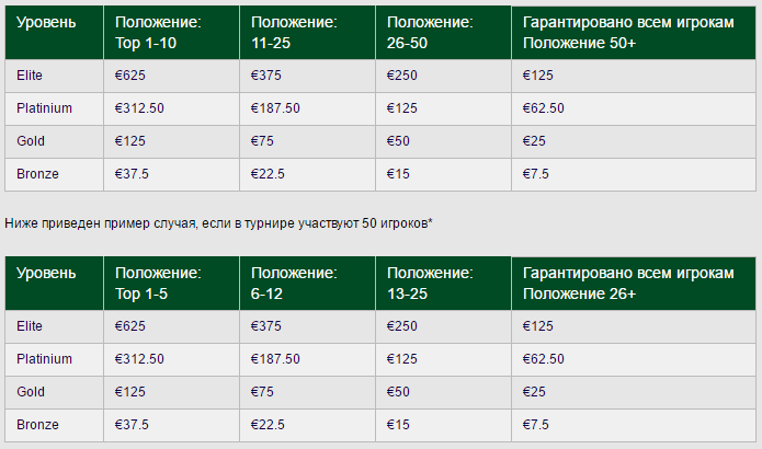 - Две возможности попробовать свои силы в турнирах с финансовой гарантией в 500 евро с вступительным взносом 1,1 евро (зарегистрироваться в данных турнирах могут только новые клиенты).