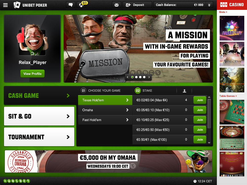 На официальном сайте Unibet вам будут предложены различные покерные дисциплины для игры. Впрочем, основной упор делается на Техасский Холдем и Омаху в различных их вариациях (разные лимиты ставок, разные форматы столов). Также здесь можно найти достаточно богатый выбор различных турнирных событий:
